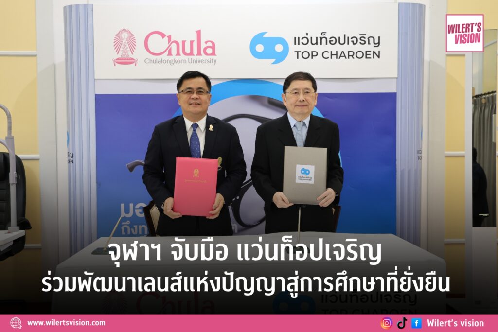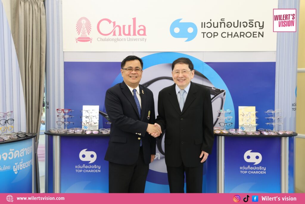 พิธีลงนามบันทึกความร่วมมือ (MOU) ระหว่างจุฬาลงกรณ์มหาวิทยาลัย ร่วมกับ แว่นท็อปเจริญ – บริษัท ร่วมเจริญ พัฒนา จำกัด (มหาชน) โดยได้รับเกียรติจาก ศ.ดร.วิเลิศ ภูริวัชร อธิการบดีจุฬาฯ และคุณนพศักดิ์ ตรีพรชัยศักดิ์ ประธานเจ้าหน้าที่บริหาร แว่นท็อปเจริญ – บริษัท ร่วมเจริญ พัฒนา จำกัด (มหาชน)